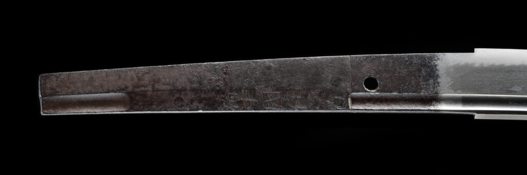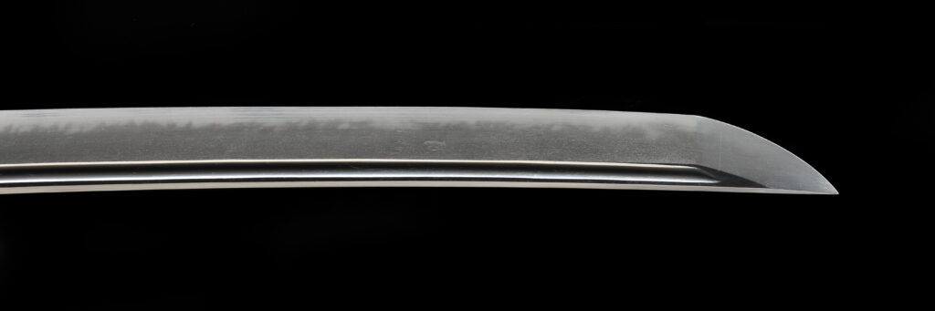尾張徳川家の附家老・犬山成瀬家2代成瀬正虎の遺物として、尾張徳川家2代徳川光友に献上された刀です。 次直は備中国(岡山県)青江の刀工です。本刀は南北朝時代に流行した長寸の太刀を大胆に切り詰めた品で、身幅が広く大切先の雄大な姿をしており、精美な地鉄(じがね)に華やかな乱刃(みだれば)を焼いています。切り詰めることにより銘が無くなるのを防ぐため、裏側へ折り返す折返銘の技法により、銘が残されています。