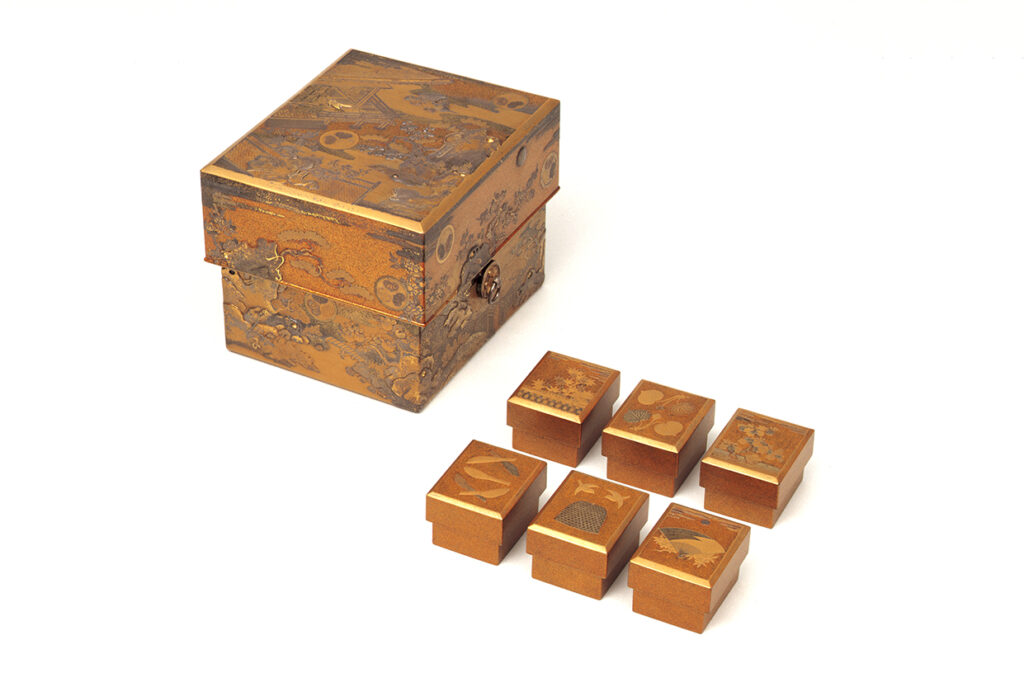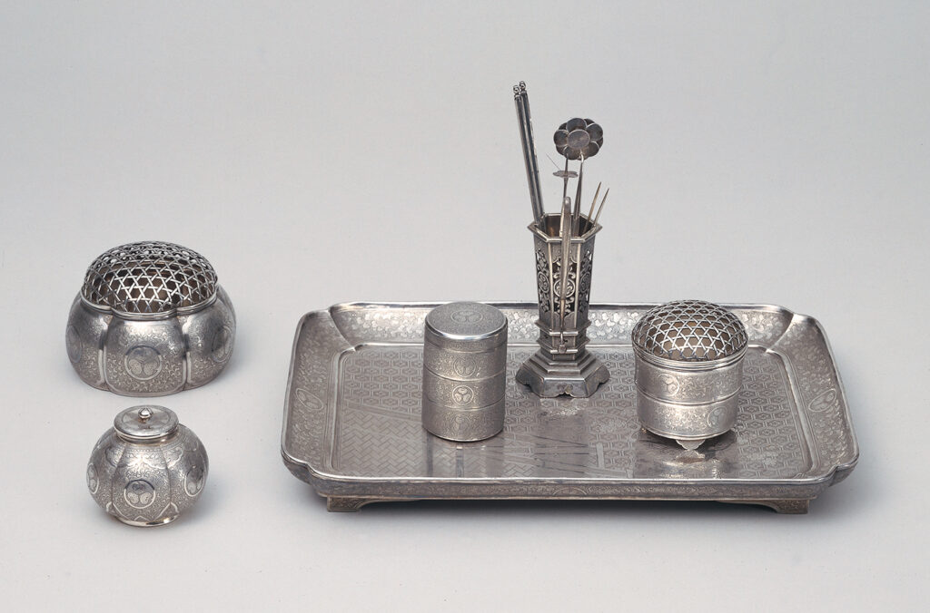銀檜垣に梅図香盆飾り(金銀調度類34種の内)