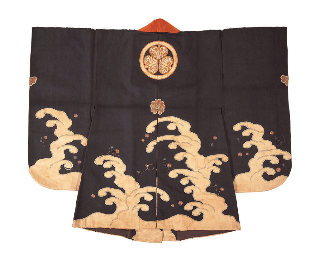 白羅紗地葵紋付唐獅子牡丹文火事羽織