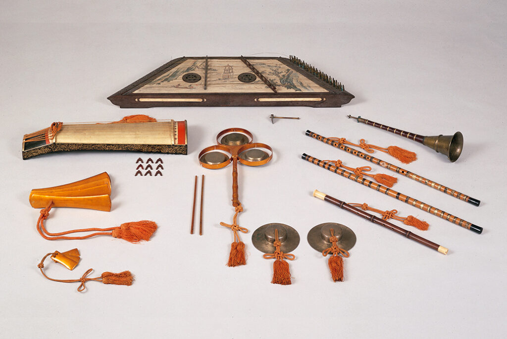琉球楽器 夜雨琴・提琴・両班・三板・三金・新心・哨吶・横笛・管