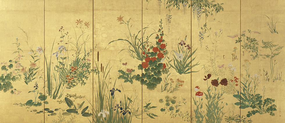 百花百草図屛風