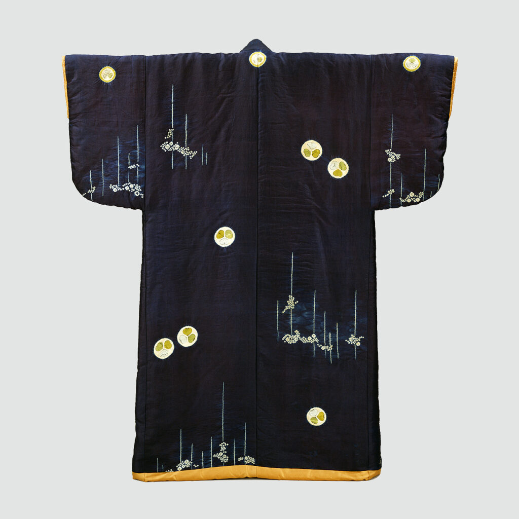 紺地葵紋散槍梅文辻ケ花染小袖