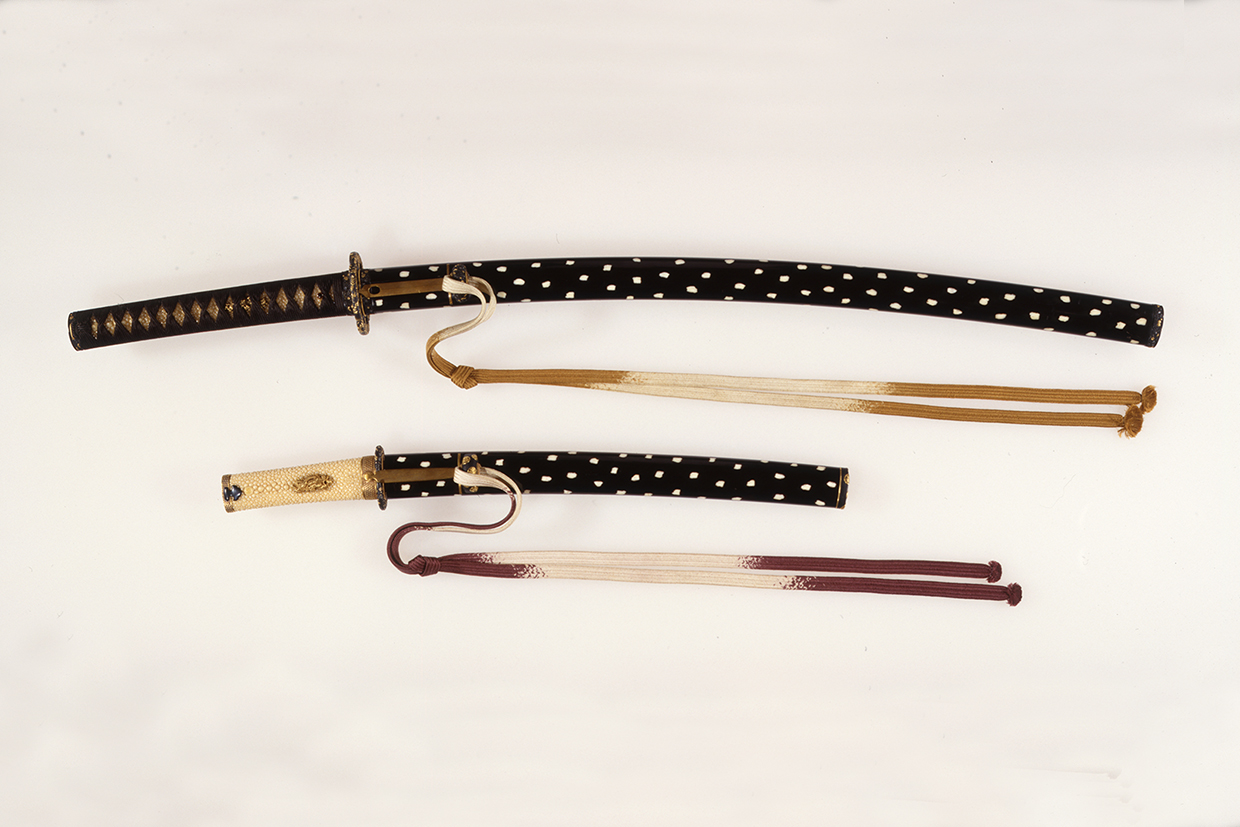 江戸時代の武家社会では、身分や年齢、季節や儀礼などによる細やかな決まりごとのなかで、格式に相応しく、おごそかに、あるいは美麗によそおうことが求められました。男性は儀礼など最もフォーマルな場面では公家の伝統的な装束を身に着ける一方、日常のカジュアルな場面で着用する羽織や刀剣の拵、また火事装束や陣中着などに武家ならではの粋を凝らしました。女性は生地や模様によって格の異なる着物を時に応じて使い分け、華麗な筥(はこ)迫(せこ)を携帯し、化粧によって美を体現しました。
