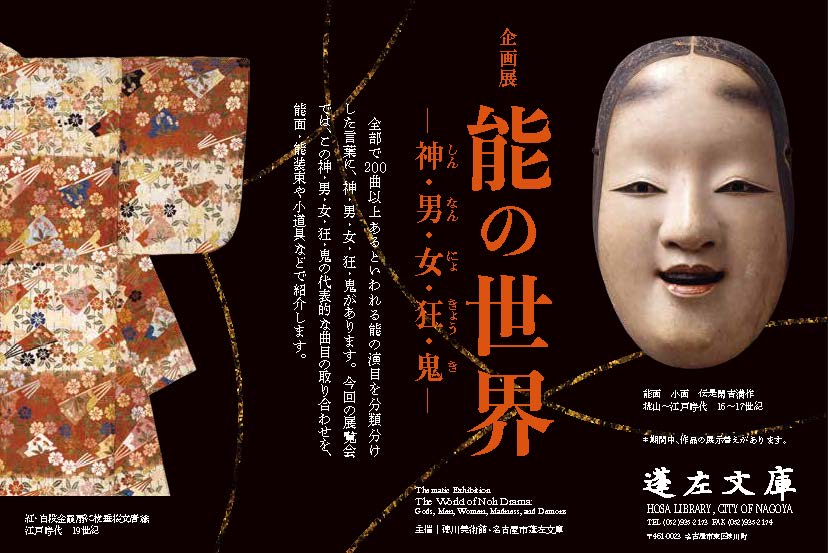 能楽は日本の伝統芸能のひとつであり、600年の歴史を刻んだ舞台芸術です。200曲以上あると言われる能の演目を分類する言葉に「神・男・女・狂・鬼(しん・なん・にょ・きょう・き)」があります。尾張徳川家に伝来した能面・能装束や小道具などを通じて、演目ごとの取り合わせを紹介します。舞台上に華開いた能楽の世界をお楽しみください。